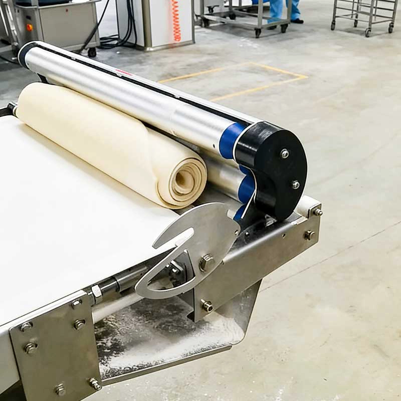 Answer: Yes, the automatic dough sheeter is designed for continuous production and can be integrated into commercial bakery and food factory production lines for high efficiency and consistent product quality.