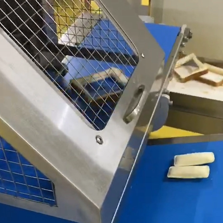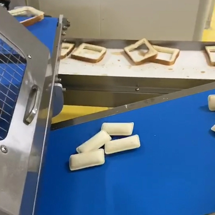 1.This pocket bread production line is designed to inject cream, jam, chocolate, and other fillings into the center of toast bread, then cut off crust edges and sealing it into a pillow-shaped finished product. It is an advanced solution for filled bakery processing.
