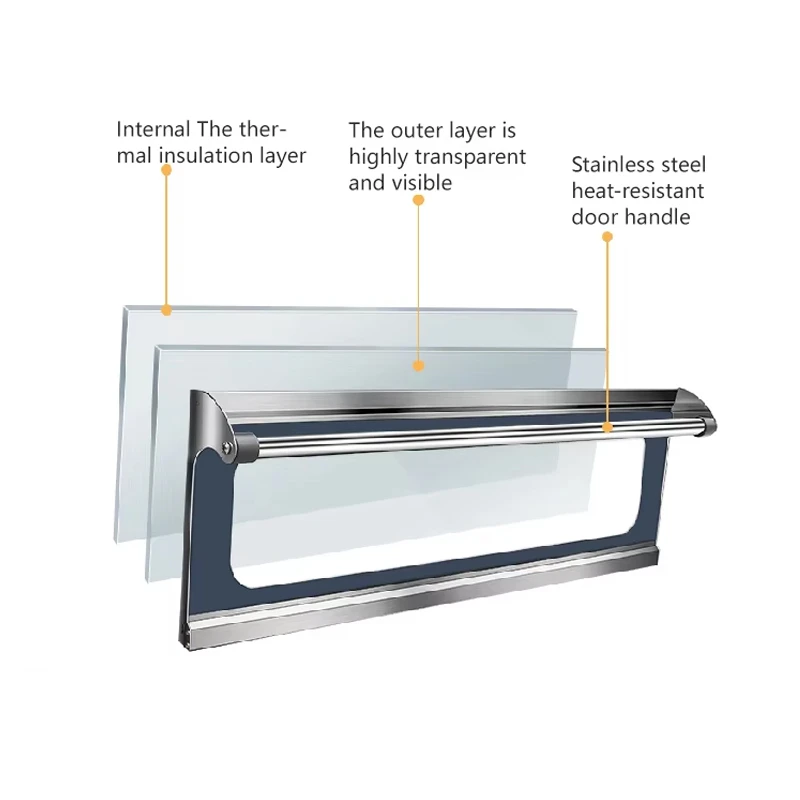 - Double-layer insulated glass door with heat-resistant stainless handle for safe operation and clear visual access to the bake.