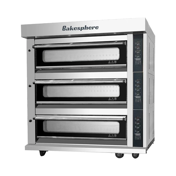Introducing this 9 Trays Gas Deck Oven from Bakesphere commercial bakery oven manufacturer in China — engineered for serious artisan baking. Designed for commercial bakeries, cafés and pizzerias, this rugged deck-style gas oven delivers the consistency, crust, and throughput needed for breads, sourdough loaves, pizza and specialty artisan breads.